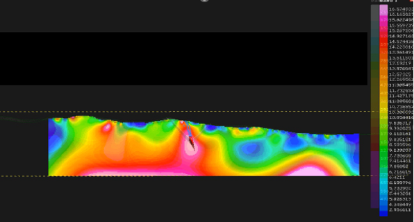 Below, we see 2D modeled Alpha IP™ corresponding to a secondary mineral exploration challenge - in the Yukon, Canada - in which the objective of "wireless" Alpha IP geophysical surveying was to define signatures over a known resource and then extend these signatures to detect new reserves nearby. The added reserves were then leveraged in the explorer’s 2023 PEA to raise money for drilling.
